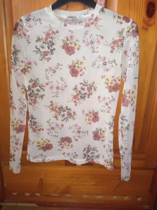 Camiseta gasa transparente floral talla L PRECIOSA