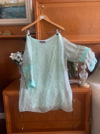- Es en realidad una sobrecamisa, pero yo la he usado como un vestido porque me queda largo - Prenda versátil - No tiene ningún desperfecto - Tejido muy agradable, plisado, no se arruga y da de sí - No indica talla pero es como una L