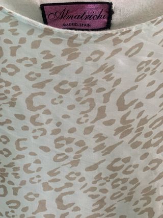 Elegante blusa de seda con un estampado animal print.Forro incororado - Diseño con mangas acampanadas trs cuartos y detalles de encaje. - Tejido ligero y fluido.