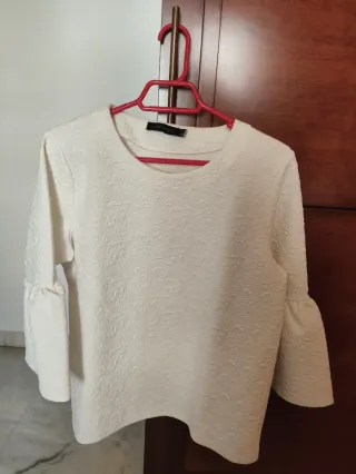 Jersey/camiseta blanco de Cortefiel. Tejido calentito con relieve. Talla L. Medidas en las fotos. Muy poco uso.
