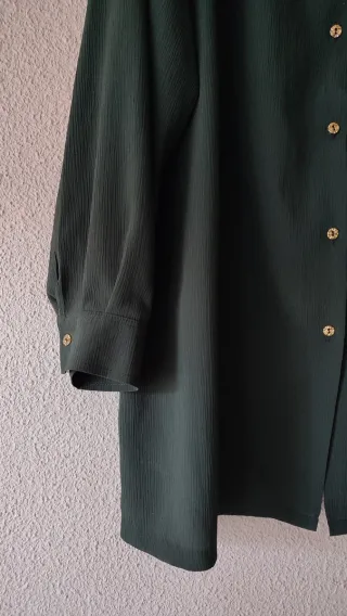 Blusa en color verde botella con botones dorados. A sus extremos bajeros lleva una pequeña rajita en vertical. Con textura de relieve. Talla: G. Dejo medidas en la última foto. Estado: completamente NUEVA sin etiqueta. Precio: 13€ #blusa #camisa