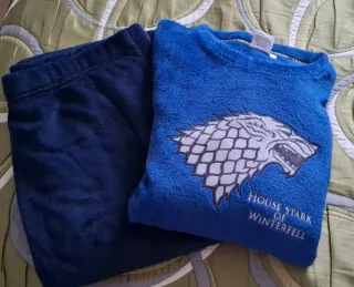 Conjunto de pijama polar para hombre con diseño de Juego de Tronos sin estrenar. Incluye camiseta y pantalón. - Camiseta azul con el logo de la Casa Stark de Invernalia. - Pantalón azul. - Tejido polar suave y cálido.
