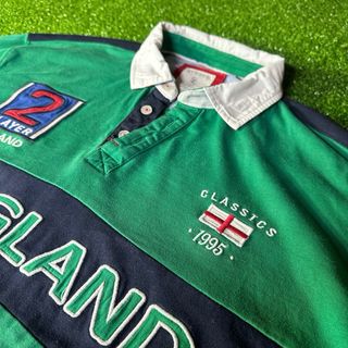Polo de manga larga con diseño deportivo. - Color verde con detalles en azul marino y blanco. - Estampado ENGLAND en el pecho. - Parche 2 PLAYER ENGLAND en la manga. - Inscripción CLASSICS 1995 con bandera inglesa.