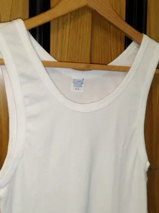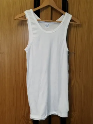 .¡Hola! 👋 Bienvenido/a a mi armario 🌈 Te traigo un básico que nunca falla y que está en perfecto estado. Una camiseta de tirantes blanca de la marca Sporting, ideal tanto para llevar debajo de camisas como para deporte o estar cómodo en casa 🏠✨. Lo mejor de esta prenda: 🌿 Composición: 100% Algodón de buena calidad (suave y transpirable). 📏 Talla: 52 (equivale a una L amplia o XL, según cómo te guste que quede). 💎 Estado: Prácticamente nueva, muy bien cuidada. 👕 Corte: Clásico de caballero, muy cómoda. Condiciones de venta: 📦 Envío súper rápido (normalmente en menos de 24/48h). 🤝 Acepto ofertas razonables. 📸 Si ne