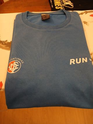 Camiseta deportiva de manga corta con el logo de Behobia. - Diseño con el escudo de C.D. FORTUNA. Talla L - Inscripción RUN en la parte delantera. - Tejido transpirable.
