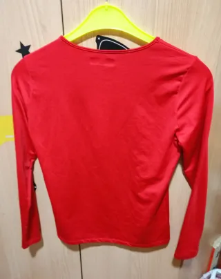 Camiseta básica de manga larga en color rojo. - Cuello redondo. - Tejido suave y cómodo.
