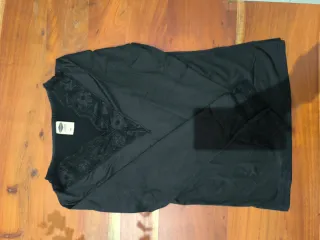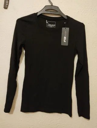 Camiseta negra de manga larga de la marca FB Sister talla M,aunque dice L,es algo más ajustada,es elástica,está nueva sin estrenar con etiquetas.Materiales:Algodón y Elástico. - Diseño de cuello redondo. - Etiqueta de la marca visible.