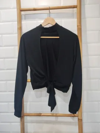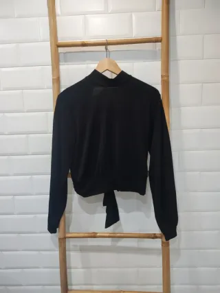 Top de manga larga con cuello alto y detalle de lazo en la espalda. - Diseño cropped. - Tejido suave y cómodo.