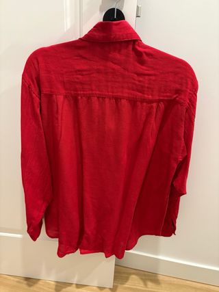 Blusa atrevida y elegante de la marca Mango, color azul eléctrico/azafata. Pone tallas S pero es tipo oversize (como una talla M, 38-40) - Diseño original, cruzado a la espalda, con cierre con corchetes y cuello camisero (corta por delante y larga detrás). - Manga larga y abotonada, se puede doblar. - Tejido con brillo sutil.