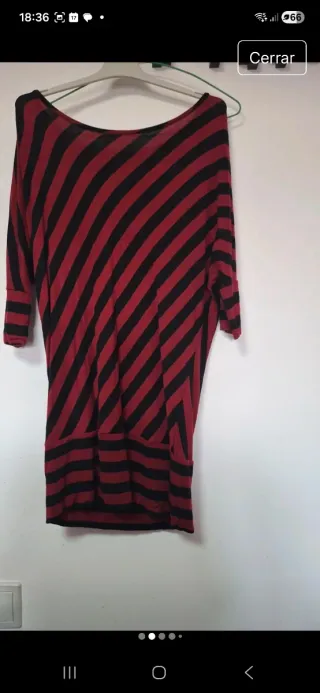 Blusa muy cómoda. Un poco más larga de atrás. Talla pone S pero da perfectamente una talla M.