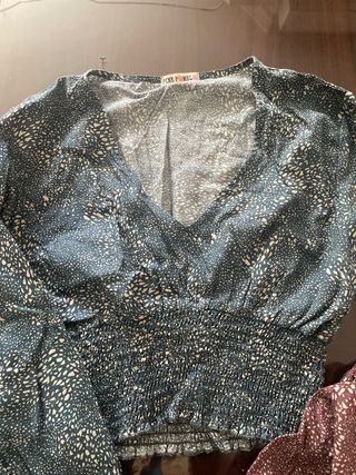 Blusa con un bonito estampado floral. Solo usada una vez, esta en muy buen estado - Cuello con volante. - Cierre de botones en la parte delantera. - Mangas largas con puños fruncidos.