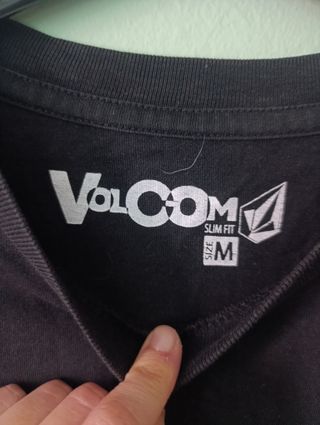 Camiseta negra de mangacorta de Volcom. - Talla M. - Logo de Volcom en la parte frontal. - Detalle de logo en la manga. - Tiene muchos años por lo que se le fue un poco el color. - Medidas aproximadas: Ancho: 47 cm Largo: 66-67 cm