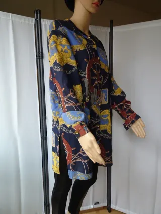 Blusón con un llamativo estampado inspirado en motivos náuticos. Su diseño es elegante y versátil. - Manga larga. - Cierre de botones dorados. - Aberturas laterales.