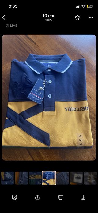 Polo de manga larga de la marca Valecuatro. Presenta un diseño bicolor en azul marino y amarillo. - Cuello tipo polo con botones. - Logo de la marca bordado en la parte frontal. - Detalle de franjas en contraste. - Etiqueta original incluida.