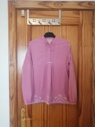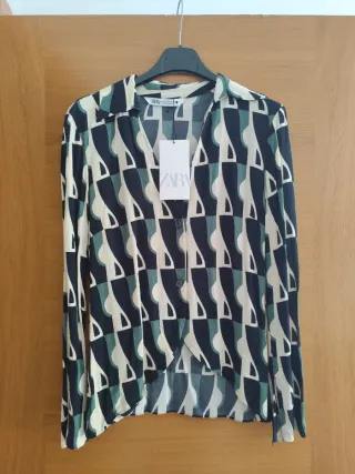 Camisa vaporosa con estampado Cachemir. - Diseño ligero y fluido. - Mangas largas. - Cintura elástica para un ajuste cómodo. - Escote en V con detalle de lazada. Prácticamente nuevas. Hago hueco en armario.