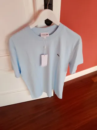 Camiseta de manga corta Lacoste en un bonito tono azul claro. Perfecta para un look casual y cómodo.Prendas ideales para 🎁 en navidad y reyes Adelanta tus 🛒 - Logo del cocodrilo bordado en el pecho. - Cuello redondo. - Tejido suave y transpirable.