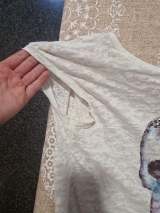 Camiseta de manga corta de shein con la manga de encaje, muy bonita. La compre y talla grande, es la talla M, sin estrenar