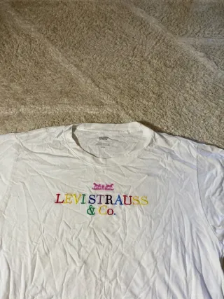 Camiseta de Levi's con un diseño llamativo y moderno. - Logo de Levi's & Co. bordado en colores vibrantes. - Cuello redondo y manga corta. - Corte clásico y cómodo.