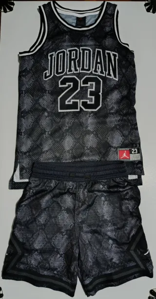 Conjunto deportivo de dos piezas de la marca Jordan. - Camiseta sin mangas con estampado. - Pantalón corto con cintura elástica. - Diseño con estampado de escamas.