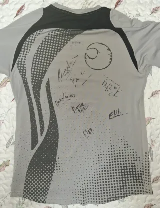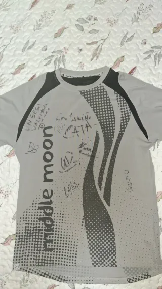 Camiseta de la marca Middle Moon con múltiples firmas. [ FIRMADA POR L@S PARTICIPANTES DEL 1° TORNEO DE PADEL INTERNACIONAL EN LA CAJA MÁGICA MADRID ] Hernan BB Auguste Juan Martín Díaz Cata Osorio Mieres Maxi Sánchez Sanyo Gutiérrez Valeria Pavón Catalina Tenorio Fernando Belasteguin Alejandra Salazar Patty Llaguno Eli Amatriain LOS MEJORES DE LA HISTORIA [ CAMISETA MYSTICA FIRMADA POR MAPI & MAJO / GODO DIAZ & DANIEL SS / JUAN MARTIN DIAZ ESCUCHO OFERTAS - Diseño con estampado de puntos y líneas. - Cuello redondo y mangas cortas.