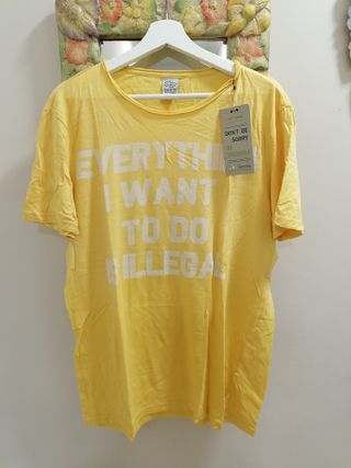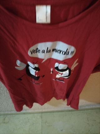Camiseta de Pampling talle L de Chica,pero es un poco pequeña para L,es más bien como una M.Es divertida y cómoda.Tengo más modelillos, preguntar sin compromiso.