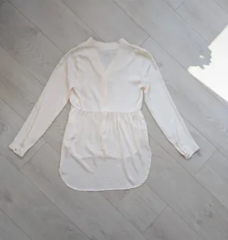 Blusa de manga larga en color crema. Su diseño es moderno y favorecedor. - Cuello en V. - Color crema satinado. - Firma: H&M. - Talla 34. - Poco uso. Hago envío, también se puede recoger en la calle Jaime el conquistador (28045, cerca de los metros Delicias y Legazpi).