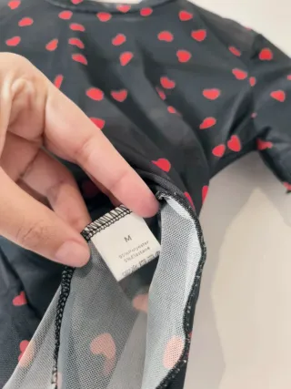 Crop top de malla con estampado de corazones, semitransparente, manga corta y talla M. - Nuevo a estrenar ✨ - 44 de largo, 36 de axilas y 45 de hombros #croptop #camiseta #top #malla #vintage