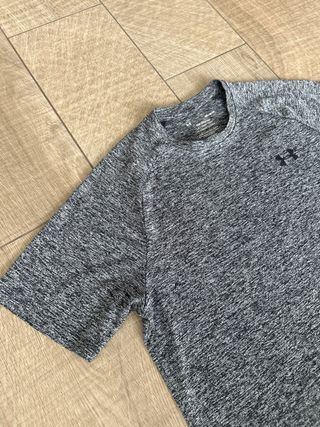 Camiseta técnica de Under Armour para hombre en talla M, color gris jaspeado. ✔ Muy poco uso ✔ Estado perfecto, como nueva ✔ Tejido transpirable y de secado rápido ✔ Muy cómoda para gimnasio, running, fitness o entrenamiento El tejido técnico ayuda a evacuar el sudor y mantenerte seco durante el ejercicio. Marca: Under Armour Talla: M Color: gris Estado: excelente 📦 Envío rápido. 💬 Si tienes dudas, escríbeme sin problema. Palabras clave: camiseta deportiva, gym, running, fitness, training, técnica.