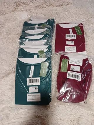 10 Camisetas verdes talla L, 1 Roja talla M y XXL