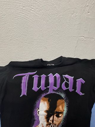 Camiseta oficial con diseño de Tupac. - Color negro con detalles morados. - Talla S.