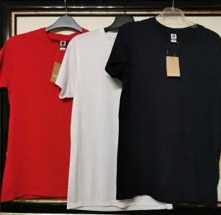 Lote de tres camisetas básicas. - Tres colores disponibles: negro, rojo y blanco. - Tallas S / 34-36 / 44-46.