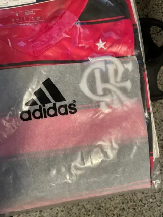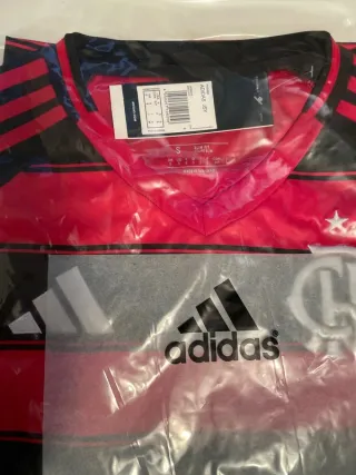 Camiseta oficial del Flamengo. - Diseño a rayas rojas y negras. - Logo de Adidas. - Talla S.
