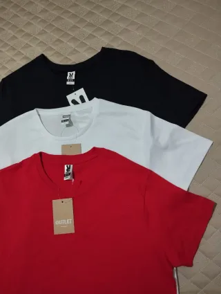 Conjunto de tres camisetas básicas de manga corta. - Camisetas de la marca Roly. - Talla S. - Colores: blanco, negro y rojo.