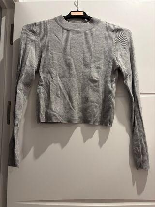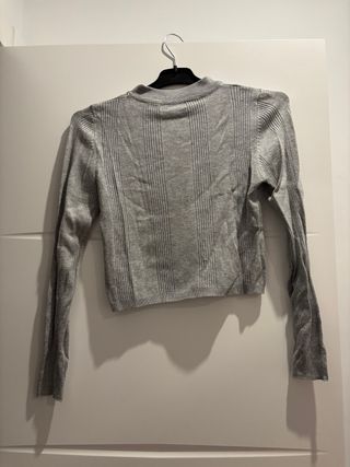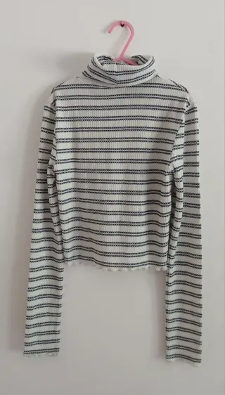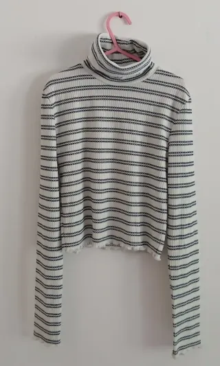 Crop top de punto con cuello alto y manga larga. Su tejido acanalado le da un toque moderno y elegante. - Diseño acanalado. - Cuello alto. - Manga larga.