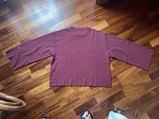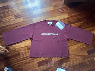 Camiseta de manga larga de la marca EMESTUDIOS. - Color rojo vino. - Diseño con logo en el pecho. - Mangas amplias y corte deshilachado en puños y bajo. - Talla S
