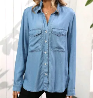 Camisa vaquera de manga larga con botones. - Dos bolsillos en la parte delantera. - Cuello camisero.