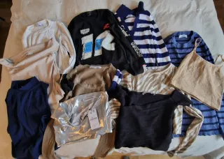 Lote de 11 camisetas de las marcas Bershka y Stradivarius. Manga corta y manga larga - Variedad de estilos y colores. - Talla S / 36 / 8. Uno de los top está nuevo a extrenar