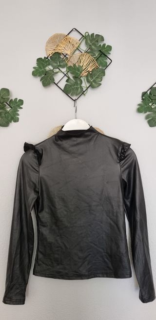 Camiseta manga larga efecto cuero,de color negro. calentitas por dentro. Talla s