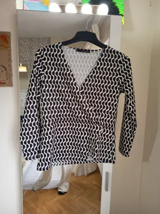 Blusa de manga larga de Zara. -Talla XS pero también sirve en S - Diseño con abertura en la espalda. - Bajo asimétrico con aberturas laterales.