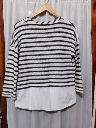 Blusa Mango Rayas Gris y Blanco. Talla S/M
