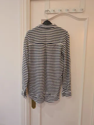 Camisa de manga larga con un diseño de rayas clásicas en azul marino y blanco. Es una prenda versátil y cómoda. - Más ropa en mi perfil, si te interesan más cosas hago lotes y descuentos por lotes. - Cuello camisero. - Cierre de botones. - Tejido ligero.