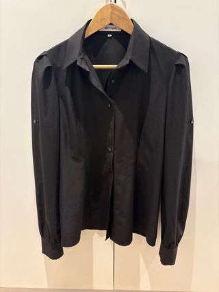 Elegante camisa negra de manga larga. - Tela que no se arruga - Cuello camisero. - Cierre de botones. - Puños abotonados. - Detalle de hombros. - Tiras internas para doblar la manga
