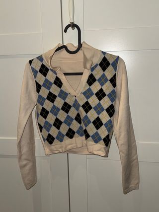 Jersey SHEIN Beige Cuadros Azules Talla S