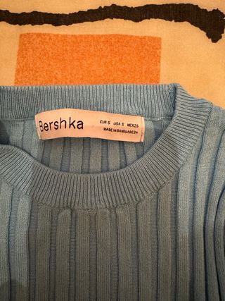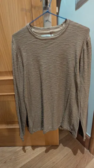 Camiseta de mujer de manga larga Color verde, caqui Marca Mango Talla S Extremos rizados Tejido canalé Sin etiquetas, pero con poco uso Solo usada como dos veces, me queda pequeña Perfecto estado.