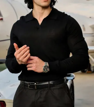 Camiseta de manga larga de la marca Youngla. - Cuello tipo polo. - Diseño de punto fino.