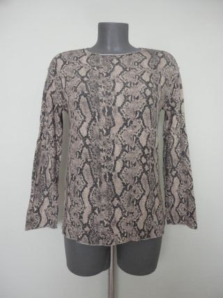 Se vende una camiseta de manga larga ZARA en Granada capital por sólo 1 Euro. Hago envíos. Talla S. Estampado animal de serpiente. Cuello redondo. Color gris y marrón. Está usada, pero se mantiene en muy buen estado. Ligera, fina y fresquita. Composición: 79% viscosa, 16% poliéster y 5% elastano. Mide 45cm de ancho de hombros y 55cm de largo. Mujer, moda, ropa, primavera, verano. Barata, económica, ganga, oportunidad, rebajas, segunda mano. ¡Entra en mi perfil para ver otras prendas en oferta! Soy vendedor 100% fiable (más de mil opiniones positivas de otros compradores).