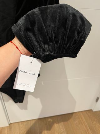 Body de terciopelo con un diseño elegante y sofisticado. - Tejido suave y agradable al tacto. - Escote pronunciado en pico. - Mangas largas abullonadas. - Parte inferior tipo braguita.