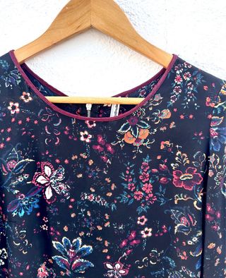 Blusa de manga larga con estampado floral es fina - Diseño con escote cuadrado. - Detalle de botones en la parte delantera. - La parte de detrás es preciosa. Se vende por falta de uso Pone que es la talla XXS porque queda corta, pero puede ser XS/S. La puede ver sin compromiso Entrega en mano en Guadalajara o Madrid
