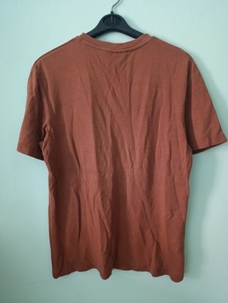 Camiseta naranja/marrón de manga corta con un diseño moderno y cómodo de Zara. - Talla S. - Bolsillo en el pecho a contraste. - Medidas aproximadas: Ancho: 46-47 cm Largo: 65-66 cm