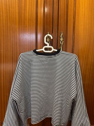 2 de líneas marineras talla s 1 de manga larga negra Stradivarius talla L 1 de manga larga rosa palo Stradivarius talla L 1 manga corta Stradivarius Todas por 8 euros.